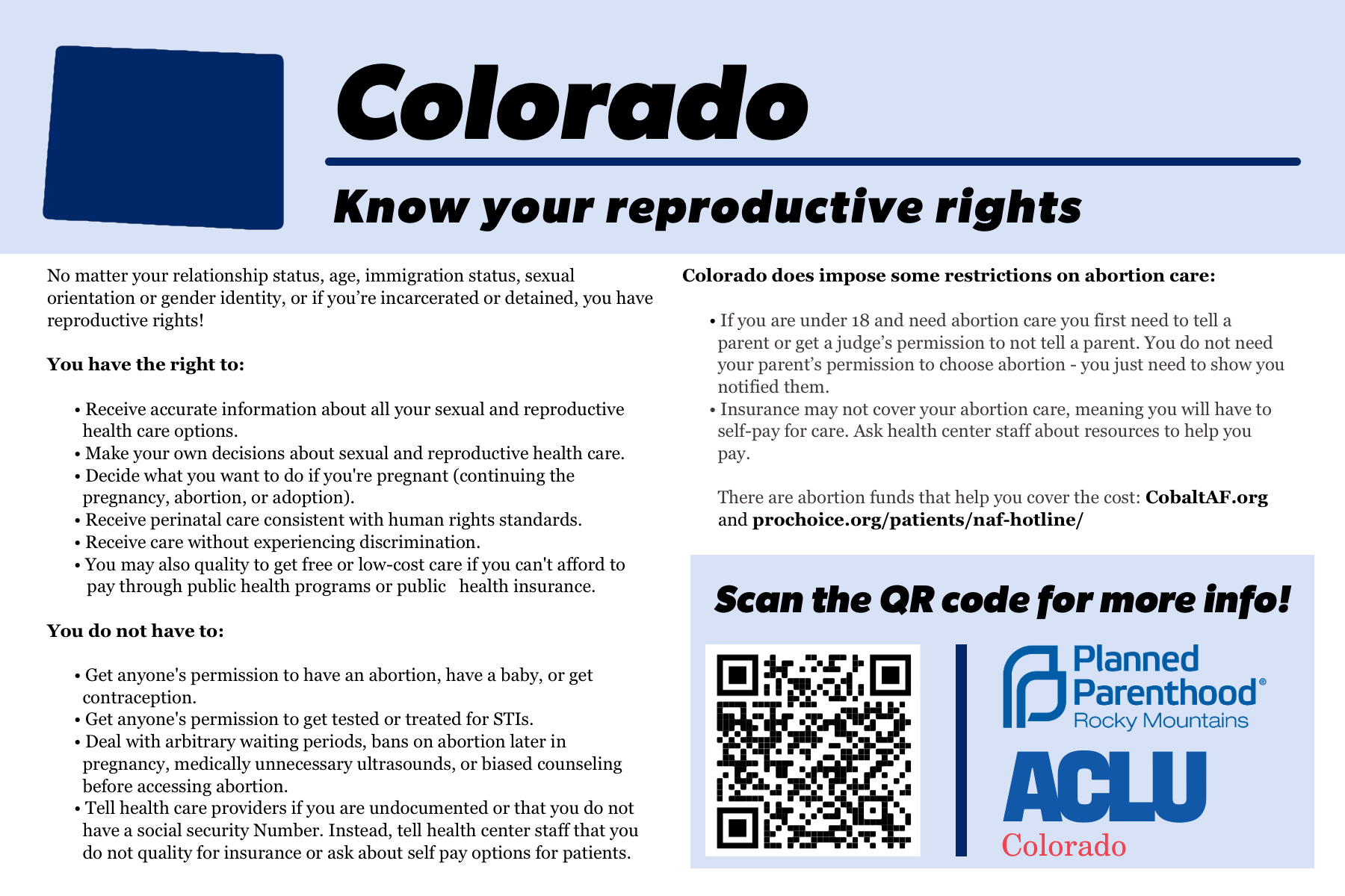 Thanks to voters, abortion rights advocates and progressive lawmakers, Colorado does not have some of the most common abortion restrictions seen in other states. We do not have mandatory waiting periods, ultrasound requirements, arbitrary gestational limits, or restrictions on what types of safe abortion procedures medical providers can offer patients. Colorado does, however, have a few abortion restrictions that prevent many from accessing care — especially young people, Coloradans with public health insurance coverage, and our neighbors held in jails and prisons.